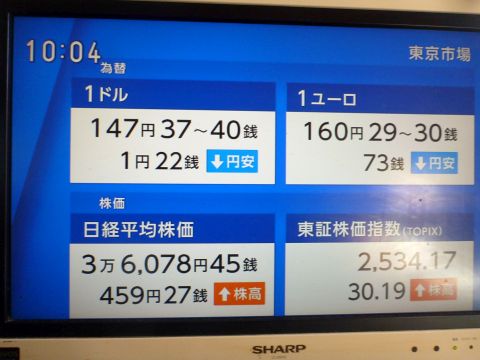 日経平均が一時、3万6000円台。
