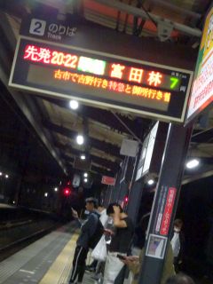 20:22の電車、20:38のバス。