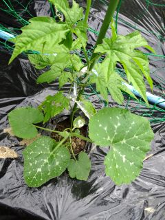 ゴーヤの接ぎ木苗からかぼちゃの葉っぱが出てきた。取りました。