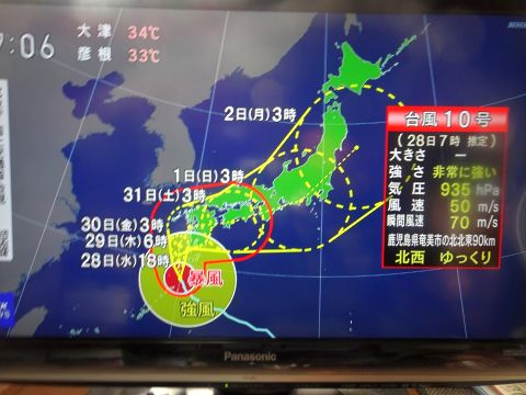 台風10号、スピードが遅い。