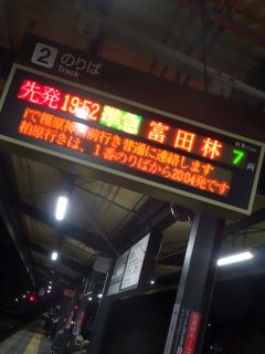 19:52の電車、20:08のバス。