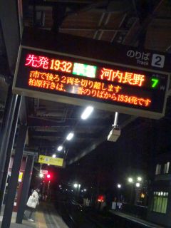 19;32の電車、19:48のバス。