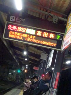 19:52の電車、20:08のバス。