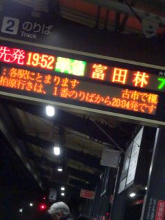 19:52の電車、20:08のバス。