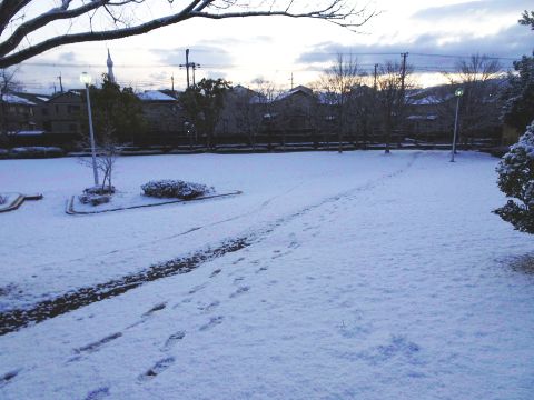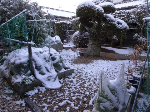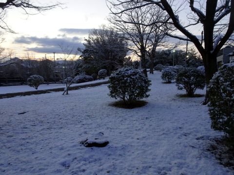 朝起きたら、雪が積もってました。