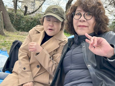 桜は咲いてるけど曇りで寒い。