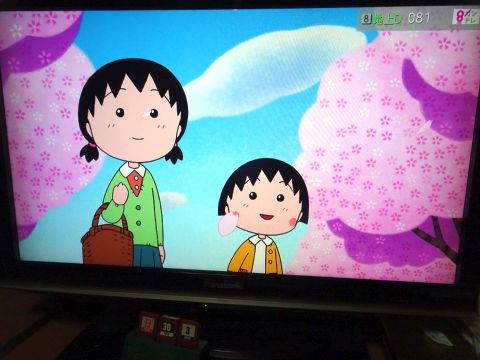 まるちゃん見ながら家ごはん。