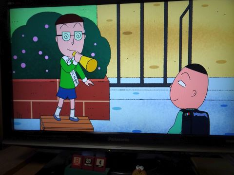 まるちゃん見ながら家ごはん。