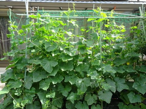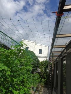 ゴーヤのネットを上にも足した。
