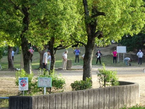大きな公園ではラジオ体操してます。