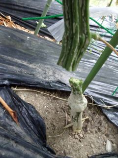 ゴーヤの軸を切った。
