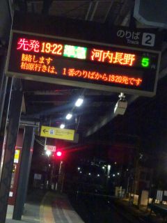 19:22の電車、19:38のバス。