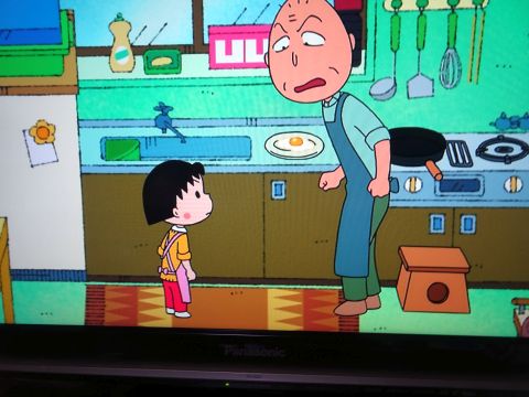 まるちゃん見ながら家ごはん。